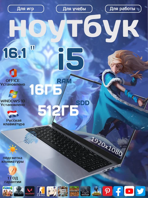 Ноутбук игровой 16.1"i5 16 512GB для работы и учебы