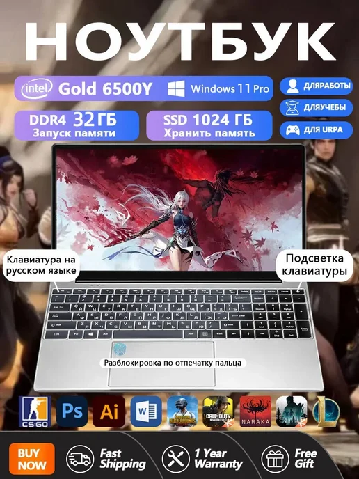 Ноутбук, 32ГБ,1ТБ, Подсветка клавиатуры,экран 15.6"