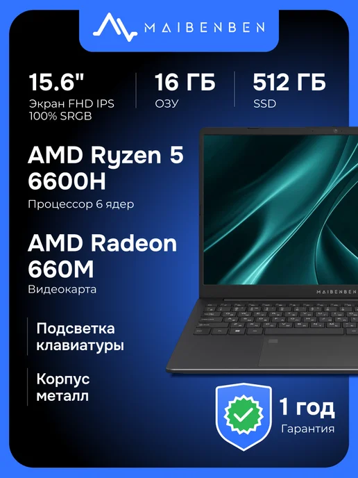 Ноутбук 15.6" B315A Ryzen 5 6600H, 16ГБ 512ГБ SSD, Linux