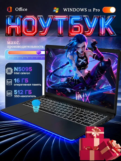 ноутбук для работы и учебы 15.6", Intel Celeron N5095, RAM 16 ГБ, SSD 256 ГБ, Intel HD Graphics, Windows Pro, серый, Русская раскладка Ноутбук 15.6", Intel Celeron N5095A, RAM 16 ГБ, SSD 256 ГБ, Intel UHD Graphics, Windows Pro, черный, Русская раскладка