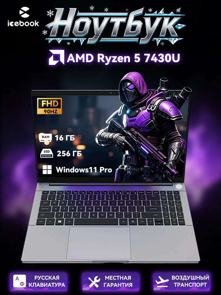 ICEBOOK ID9 Ноутбук 15.6" FHD 90Hz, AMD Ryzen 5 7430U, RAM 16 ГБ, SSD 256 ГБ, AMD Radeon Graphics, Windows 11 Pro, серый, Русская раскладка Ноутбук 15.6", AMD Ryzen 5 7430U, RAM 16 ГБ, SSD 256 ГБ, AMD Radeon, Windows Pro, темно-серый, Русская раскладка