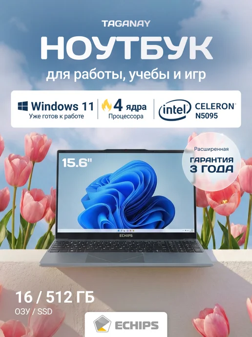Ноутбук для работы и учебы Taganay 15,6" IPS 16 512 GB