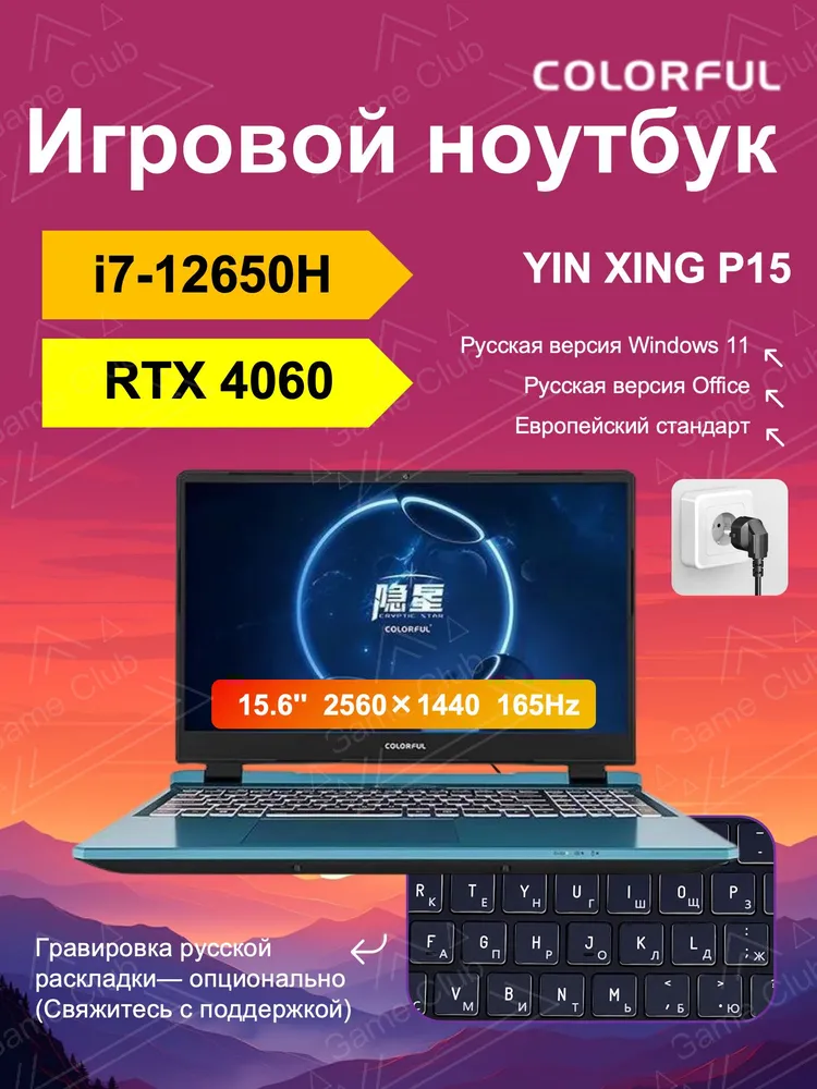 Colorful P15 Игровой ноутбук 15.6", Intel Core i7-13620H, RAM 16 ГБ, SSD 512 ГБ, NVIDIA GeForce RTX 4060 для ноутбуков (8 Гб), Windows Home, синий, Английская раскладка