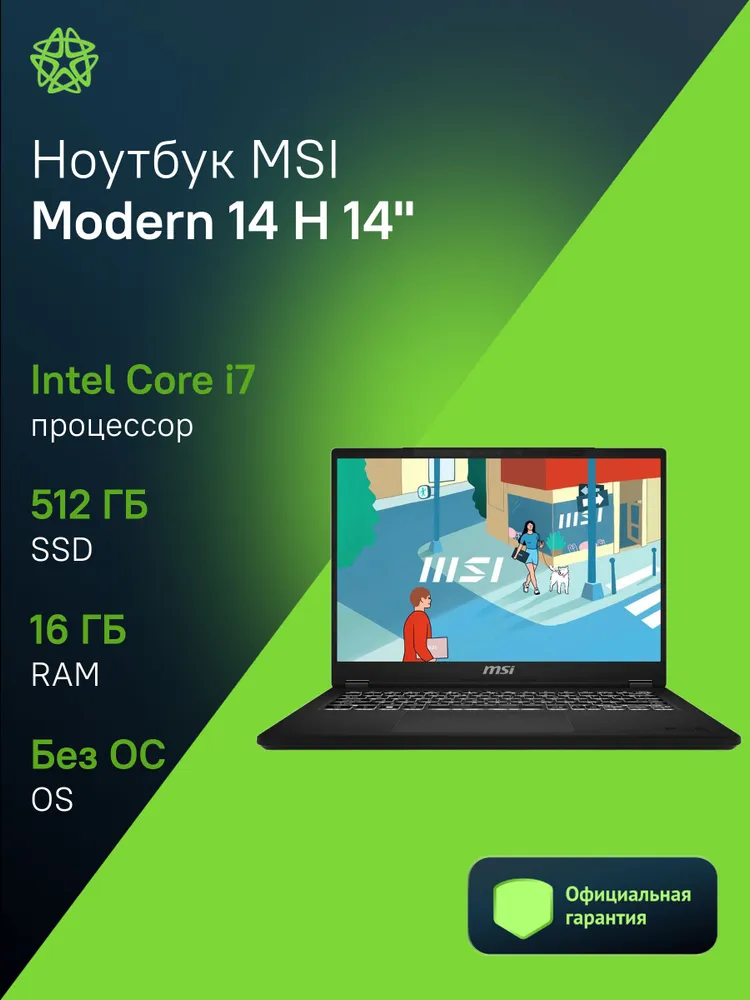 MSI 14 H D13MG-089XRU Ноутбук 14.00", Intel Core i7-13700H, RAM 16 ГБ, SSD 512 ГБ, Intel Iris Xe Graphics, (9S7-14L112-089), черный, Русская раскладка