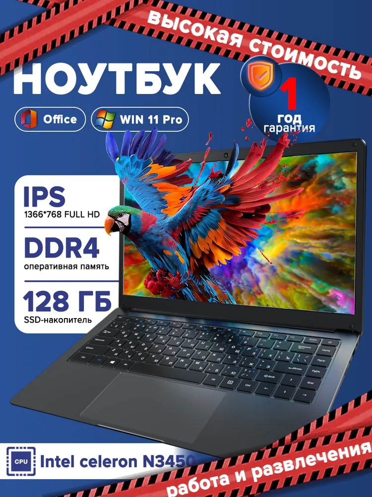ноутбук для работы Ноутбук 14", Intel Celeron N3450, RAM 6 ГБ, SSD 128 ГБ, Intel HD Graphics 500, Windows Pro, серый, Русская раскладка Ноутбук 14", Intel Celeron N3450, RAM 6 ГБ, SSD 128 ГБ, Intel UHD Graphics, Windows Pro, серый, Русская раскладка