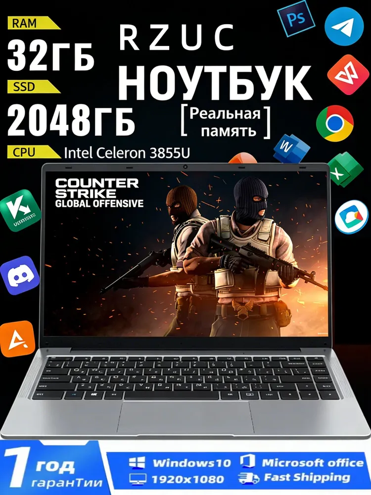 Ноутбук, 32ГБ,2ТБ, экран 15.6"