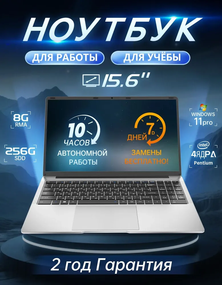 XISEZIUO Ноутбук 15.6", Intel Pentium N3710, RAM 8 ГБ, SSD 256 ГБ, Intel HD Graphics, Windows Pro, серебристый, Русская раскладка