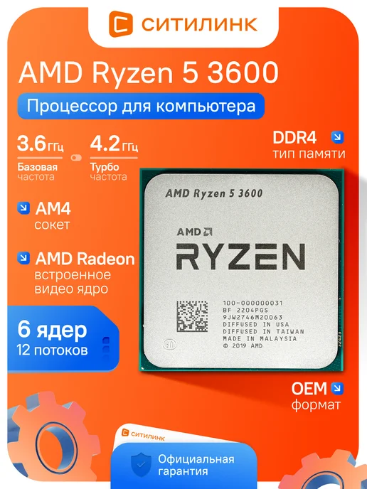 Процессор Ryzen 5 3600 Matisse AM4 6 ядер 12 потоков