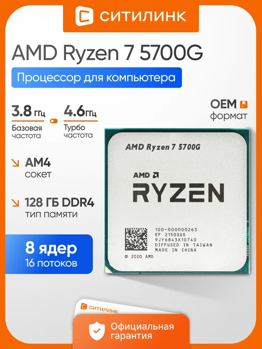 Процессор для пк Ryzen 7 5700G AM4 4,6 ГГц