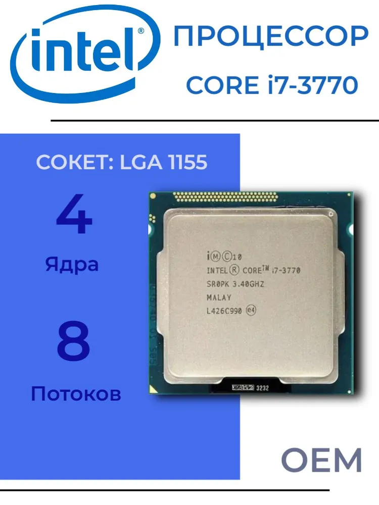 Процессор Intel Core i7-3770 LGA1155, 4/8 до 3.9 ГГц, 2xDDR3 1600, Intel HD Graphics, OEM (без кулера)