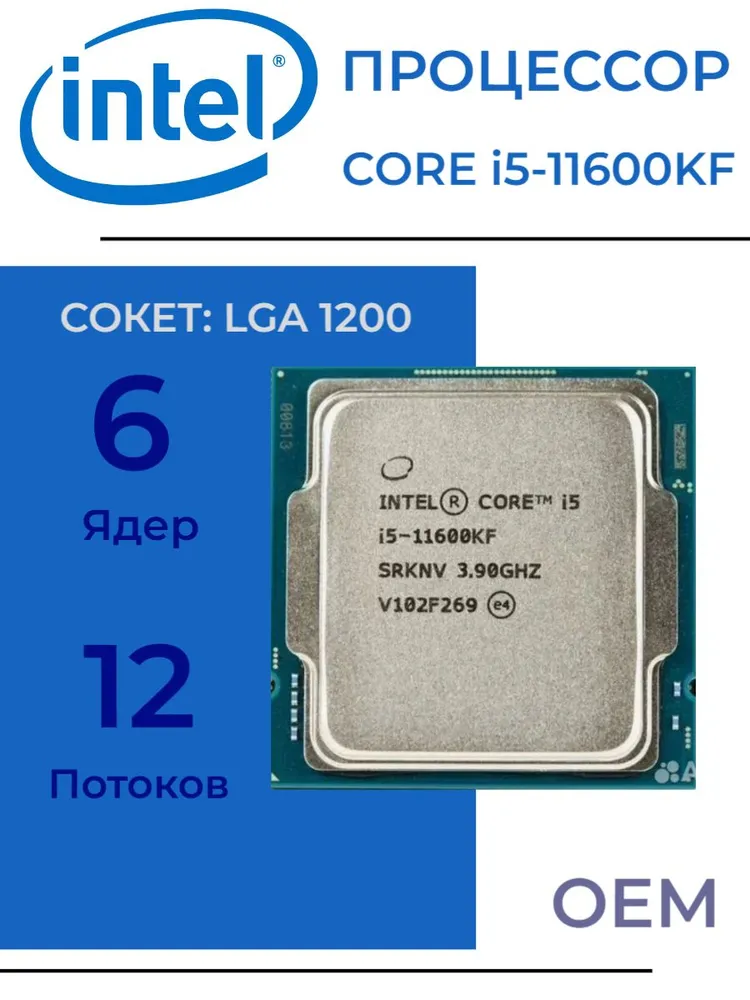 Процессор Intel Core i5-11600KF LGA1200, 6/12 до 4.9 ГГц, 2xDDR4 3200, без графики, OEM (без кулера)