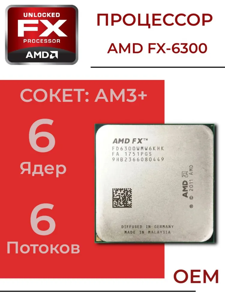 Процессор AMD FX-6300 AM3+, 6/6 до 3,8 ГГц, 2xDDR3 1866, без графики, OEM (без кулера)