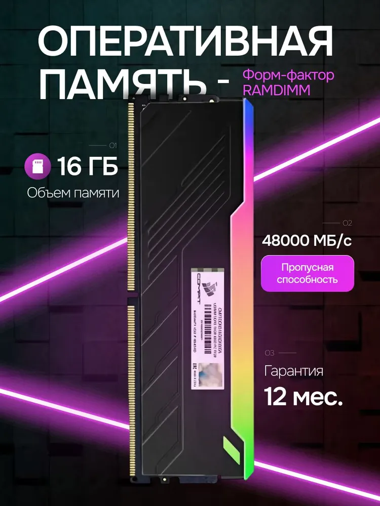 Compit Оперативная память Оперативная память COMPIT CMPTDDR516GBD6000A 16GBRGB DDR5 16GB 6000MHZ Udimm 1x16 ГБ (CMPTDDR516GBD6000A)