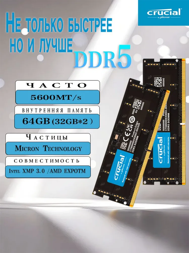 Crucial Оперативная память Crucial DDR5-5600 SODIMM 2x32 ГБ (CT32G56C46S5)