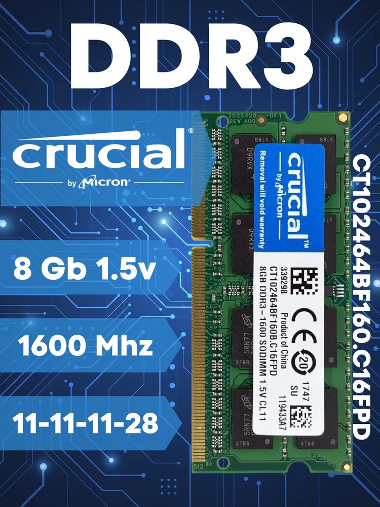Crucial Оперативная память 8 гб ddr3 1600 Mhz для ноутбука 1x8 ГБ (CT51264BA160BJ.C8FPD)