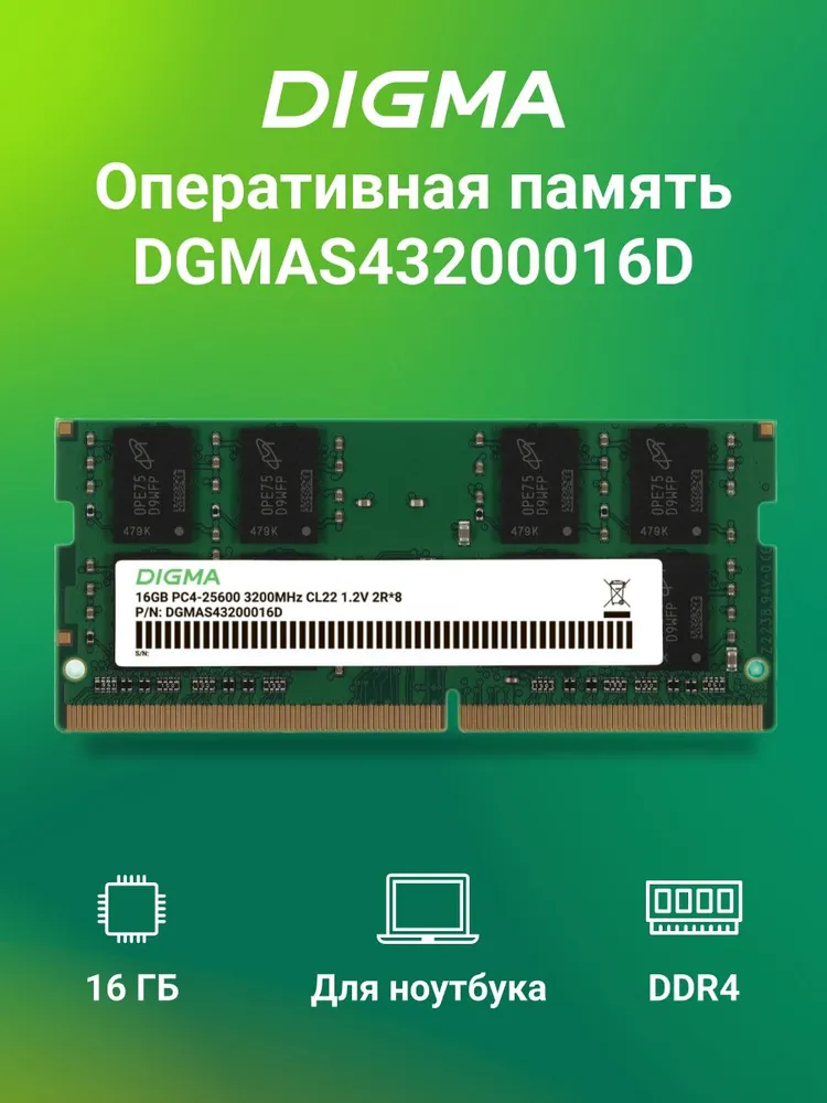 Digma Оперативная память PC4-25600 CL22 SO-DIMM 260-pin 1.2В 1x16 ГБ (DGMAS43200016D)
