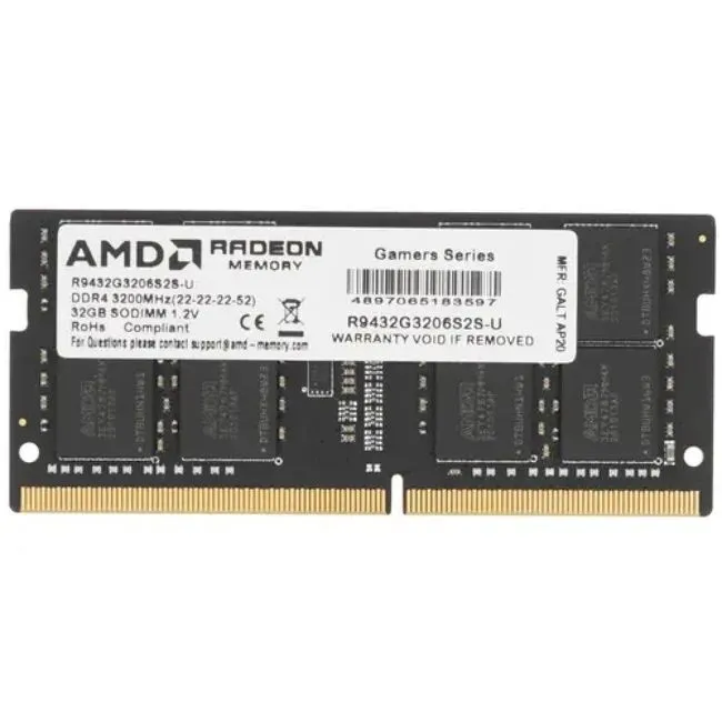 AMD Оперативная память AMD R9432G3206S2S-U Оперативная память Radeon R9, DDR4, 32GB (1x32 GB), 3200 MHz, CL22, SO-DIMM 1x32 ГБ (R9432G3206S2S-U)