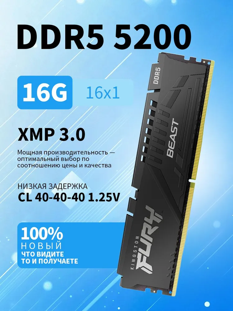 Kingston Fury Оперативная память Beast Black DDR5 5200 МГц 1x16 ГБ (KF552C40BB-16-SP)