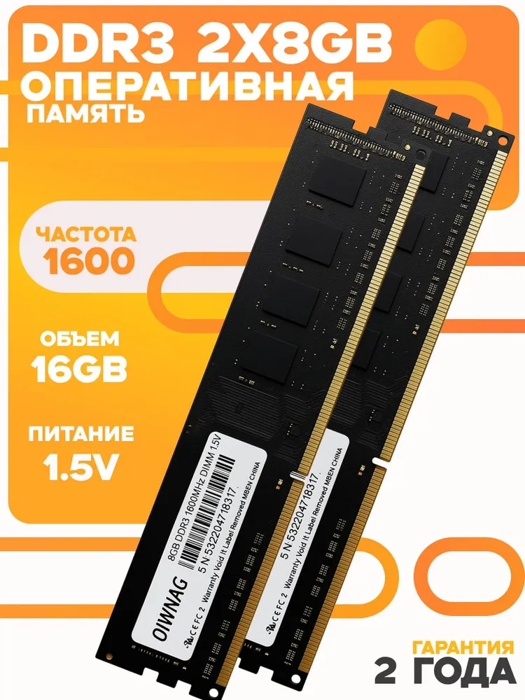 OIWNAG Оперативная память DDR3 16GB 1600MHz Оперативная память для пк 2x8 ГБ (SMDDR2024)