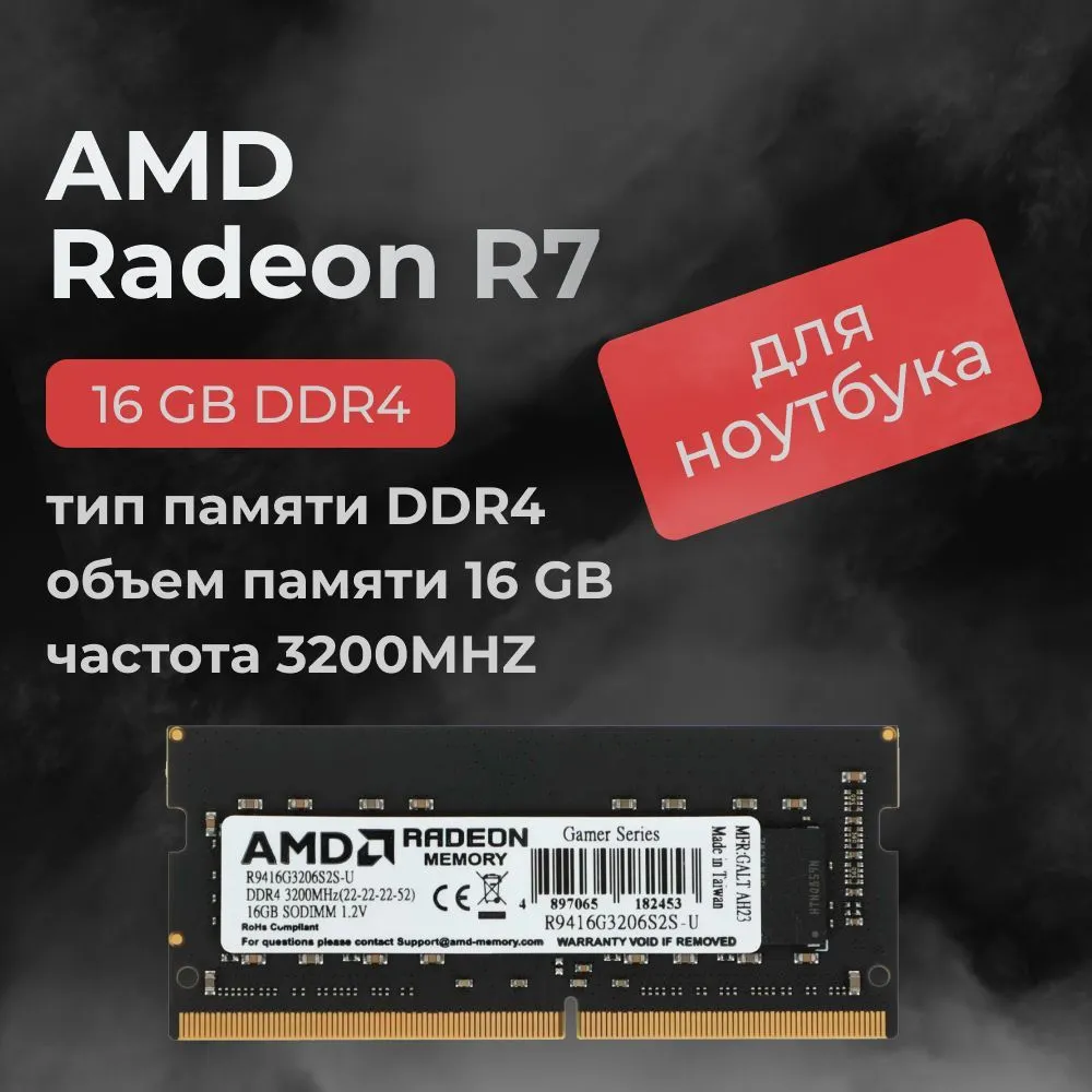 AMD Оперативная память DDR4 16 ГБ 3200МГц CL22 1x16 ГБ (R9416G3206S2S-U)