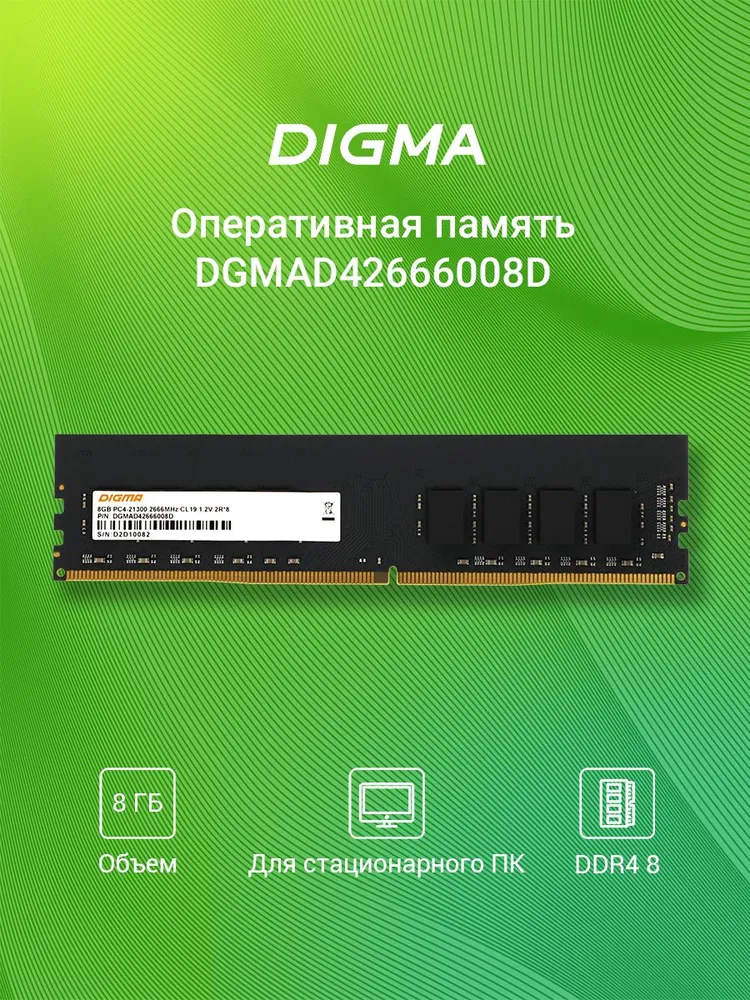 Digma Оперативная память PC4-21300 CL19 DIMM 288-pin 1.2В 1x8 ГБ (DGMAD42666008D)
