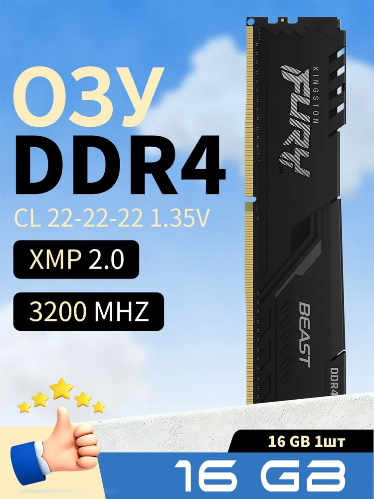 Kingston Fury Оперативная память DDR4 Beast Black 16GB 1x16 ГБ (DDR4-3200-16G-CL22)