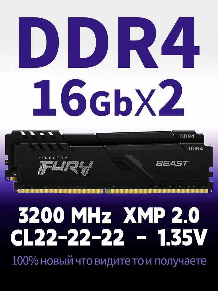 Kingston Fury Оперативная память высокая частота 1.35V 2x16 ГБ (DDR4)