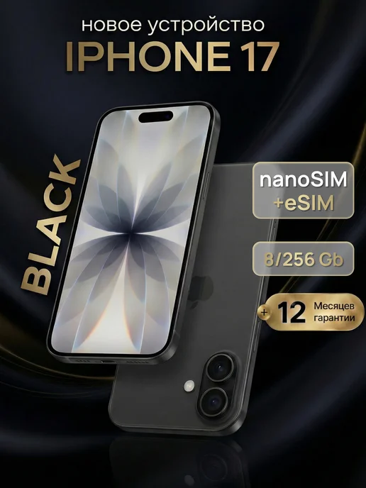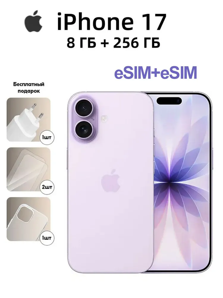 Apple Смартфон iPhone 17 (eSIM+eSIM) Поддержка русского языка Бесплатный подарок "Зарядное устройство PD мощностью 20 Вт + стеклянная пленка + прозрачный силиконовый чехол" 8/256 ГБ, фиолетовый