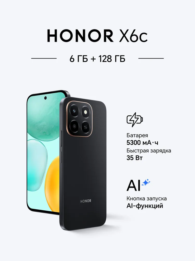 Honor Смартфон X6c Ростест (EAC) 6/128 ГБ, черный