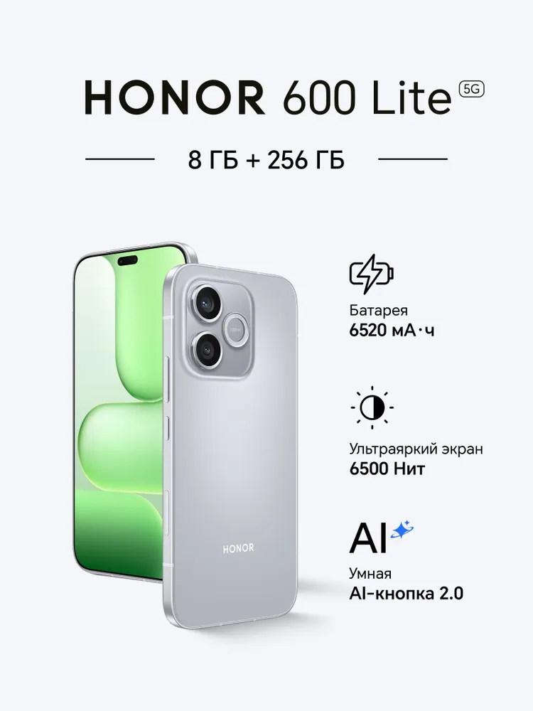 Honor Смартфон 600 Lite 8/256 ГБ, серый