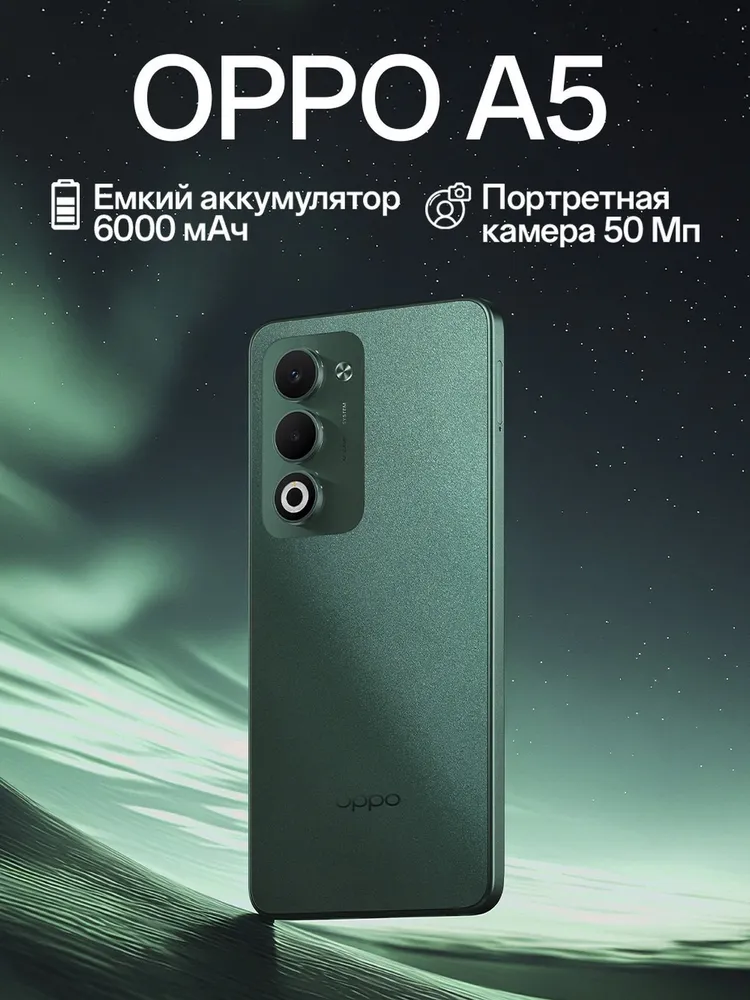OPPO Смартфон A5 Ростест (EAC) 8/256 ГБ, зеленый