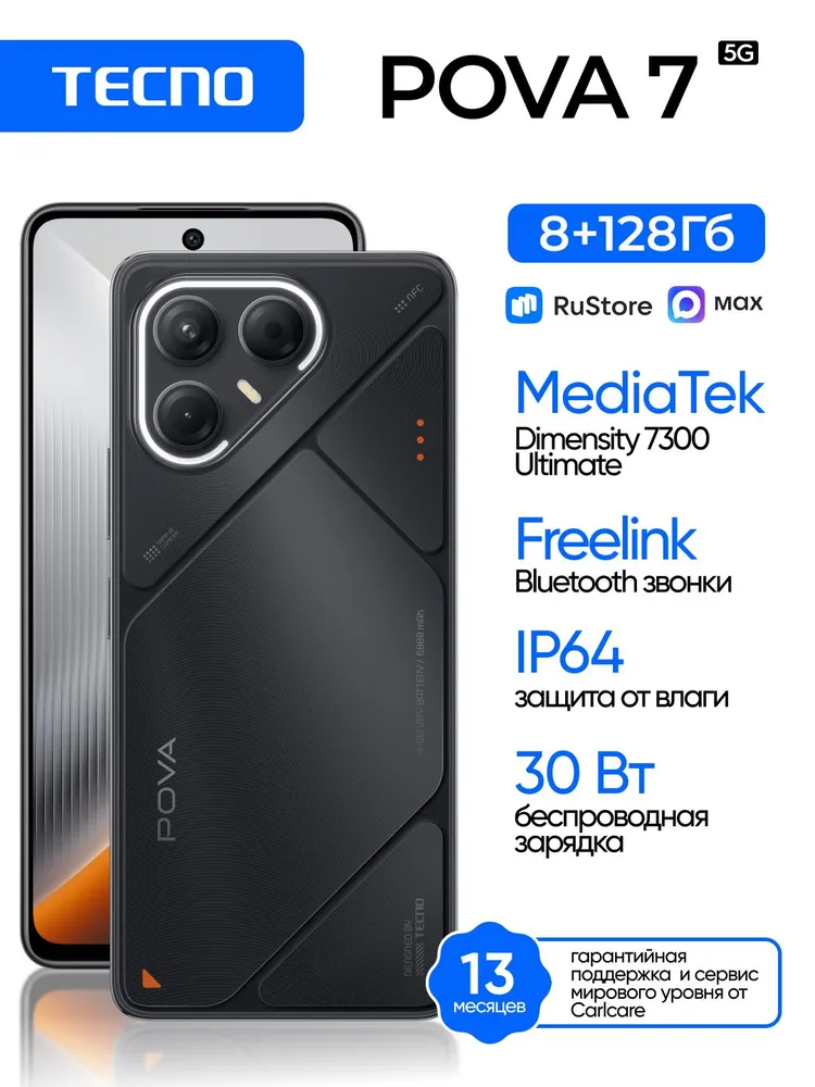 Tecno Смартфон POVA 7 5G Ростест (EAC) 8/128 ГБ, черный
