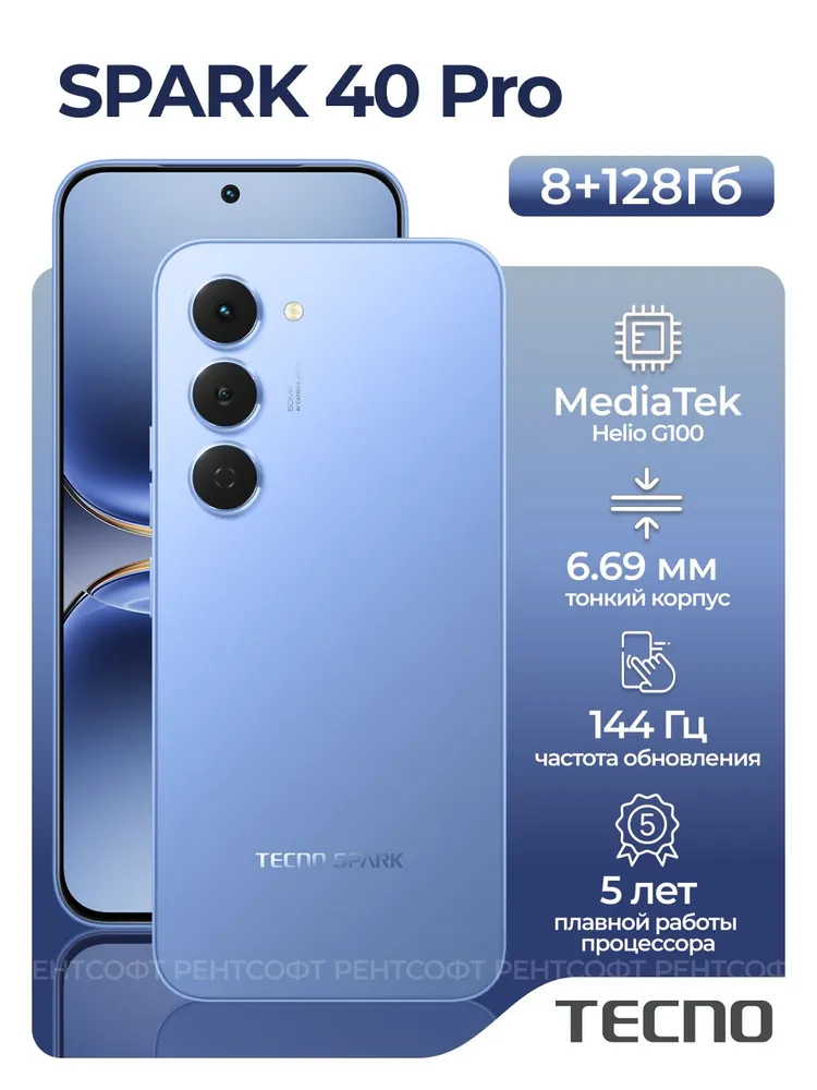 Tecno Смартфон SPARK 40 Pro Ростест (EAC) 8/128 ГБ, синий, светло-синий