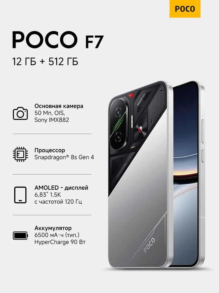 Poco Смартфон F7 Ростест (EAC) 12/512 ГБ, серый металлик