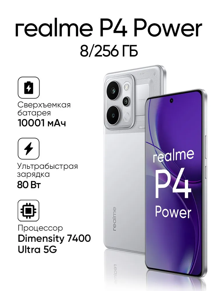 realme Смартфон P4 Power Ростест (EAC) 8/256 ГБ, серебристый