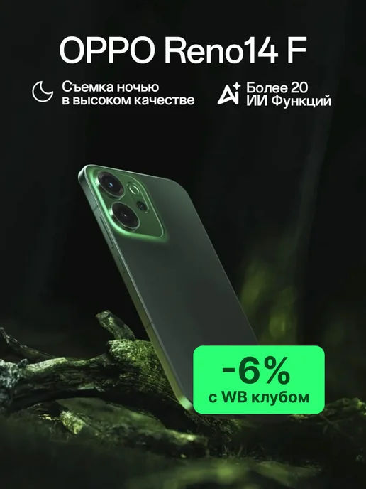 Смартфон Reno14 F 5G 8 256 Ростест (EAC), сияющий зеленый
