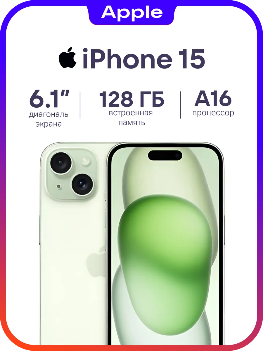 Смартфон iPhone 15 256 GB Зеленый, Восстановленный