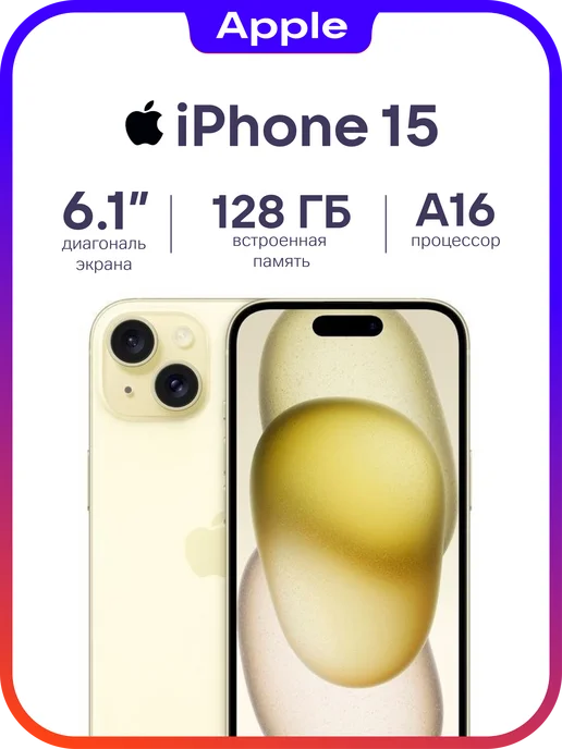 Смартфон iPhone 15 128 GB Черный, Восстановленный