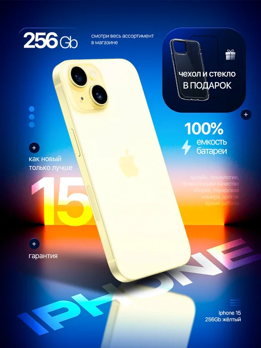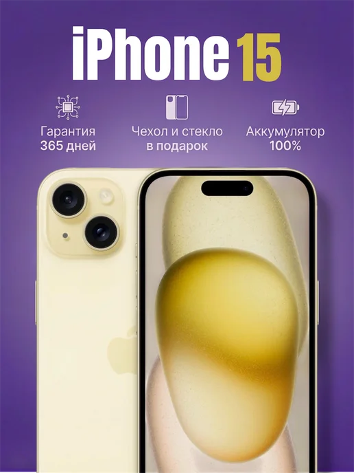 Смартфон iPhone 15 128 ГБ, желтый Восстановленный