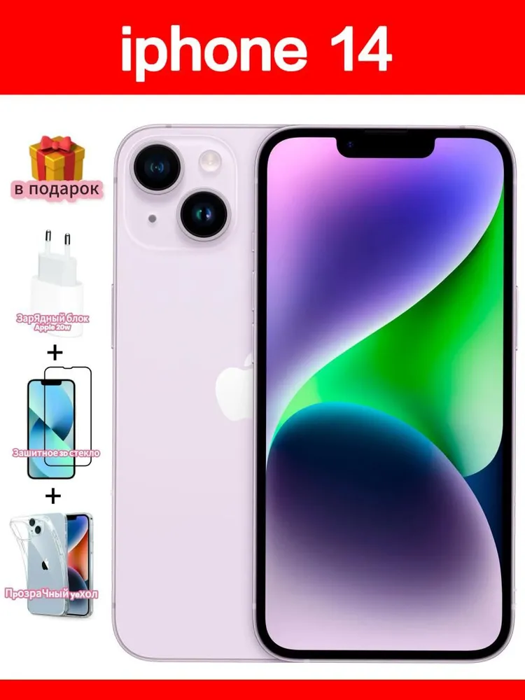 Восстановленный Apple Смартфон iPhone 14 SIM+eSIM Global 6/128 ГБ, фиолетовый