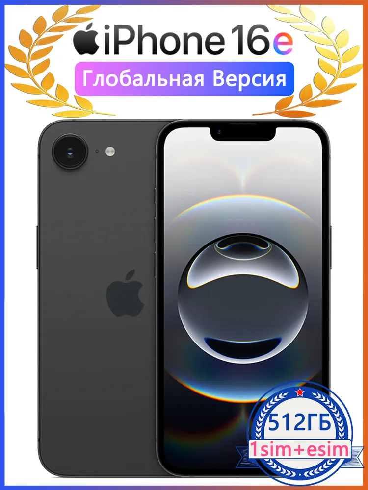 Apple Смартфон iPhone 16e Глобальная версия (1sim+esim) Global 8/512 ГБ, черный