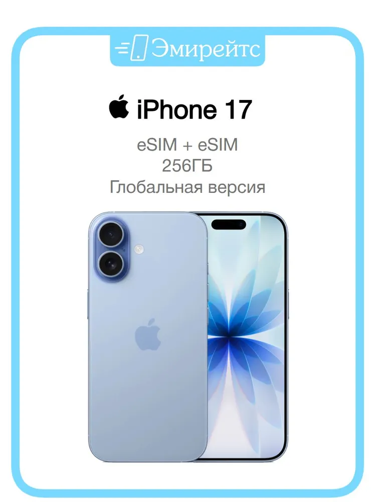 Apple Смартфон iPhone 17 (eSIMх2) ГЛОБАЛЬНАЯ ВЕРСИЯ JP 8/256 ГБ, голубой