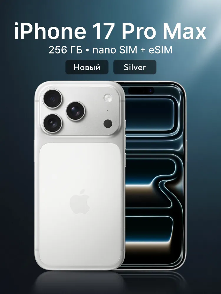 Apple Смартфон iPhone 17 Pro Max, Dual: nano SIM + eSIM Global 12/256 ГБ, серебристый