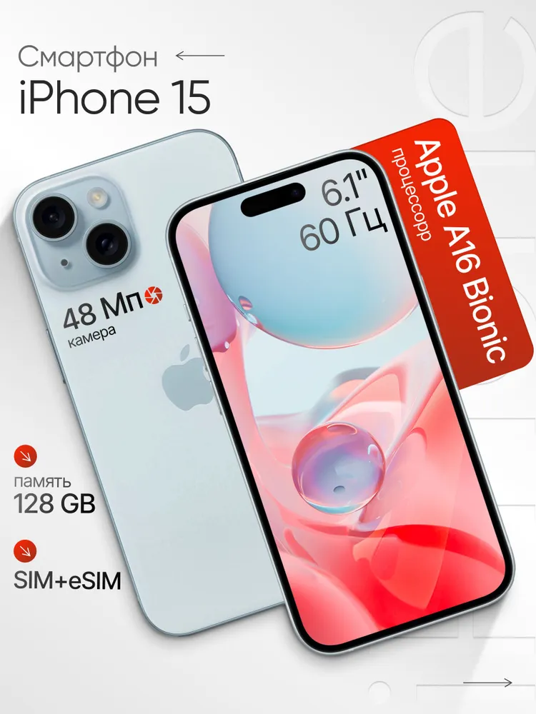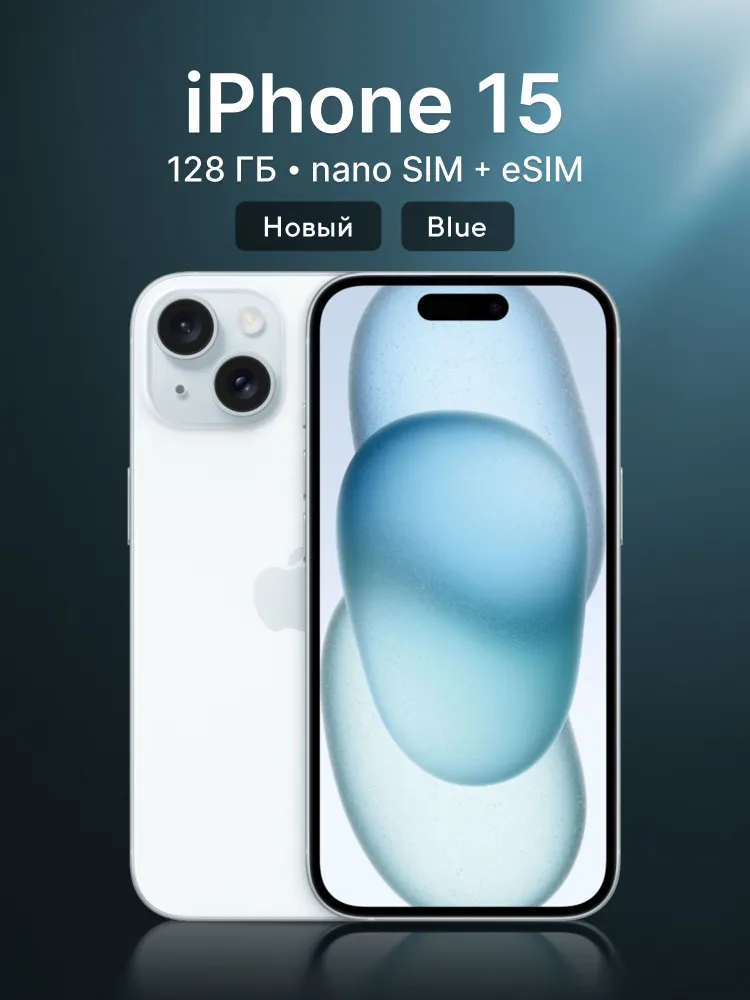 Apple Смартфон iPhone 15, SIM + ESIM, 128 ГБ, голубой