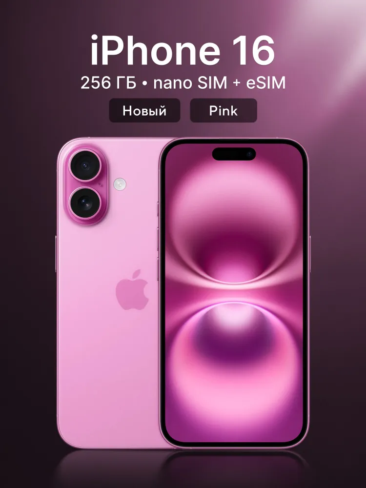 Apple Смартфон iPhone 16, Dual: nano SIM+eSIM 8/256 ГБ, розовый