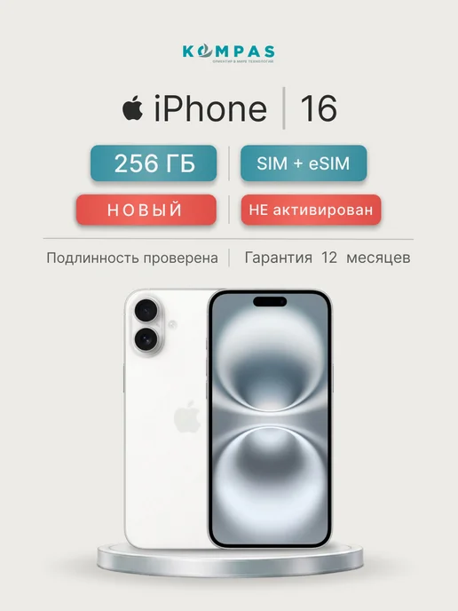 Смартфон iPhone 16 256 ГБ, SIM+eSIM, Белый (White)