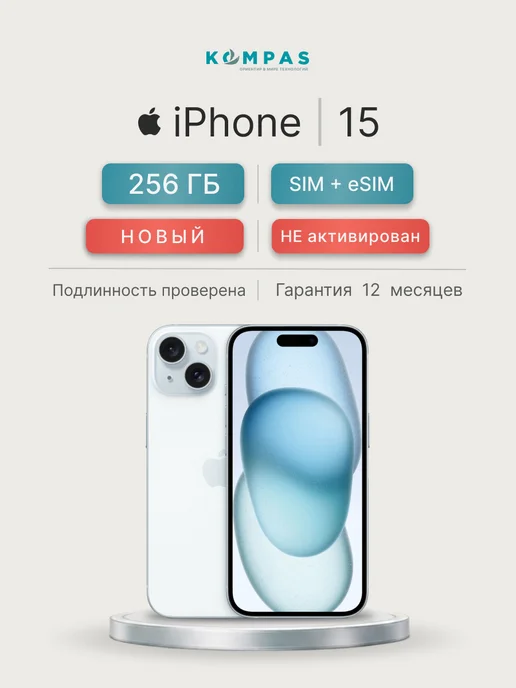 Смартфон iPhone 15 256 ГБ, SIM+eSIM, Голубой(Blue)