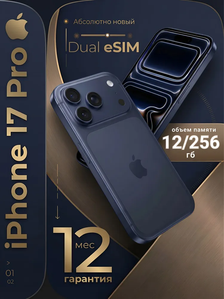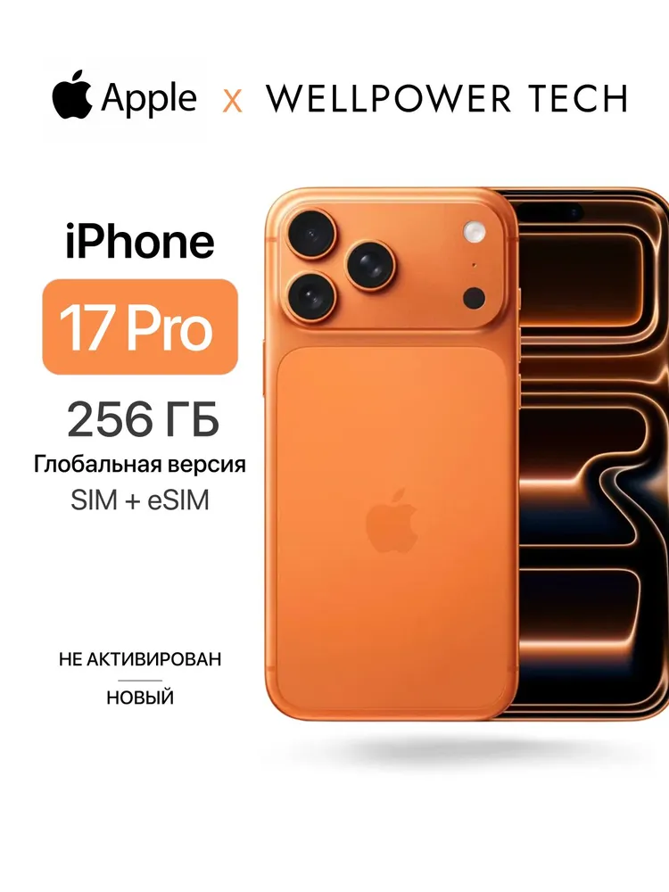 Apple Смартфон iPhone 17 Pro - SIM+eSIM (новый, не активирован, Face Time работает, eSIM поддерживается) Global 12/256 ГБ, оранжевый