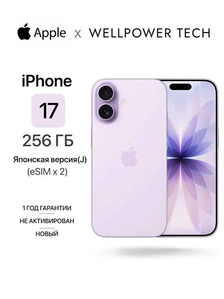 Apple Смартфон iPhone 17 - (eSIM x 2) (новый, не активирован, Face Time работает, eSIM поддерживается) Global 8/256 ГБ, фиолетовый, красный