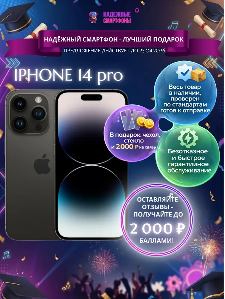 Восстановленный Apple Смартфон iPhone 14 Pro 6/256 ГБ, черный